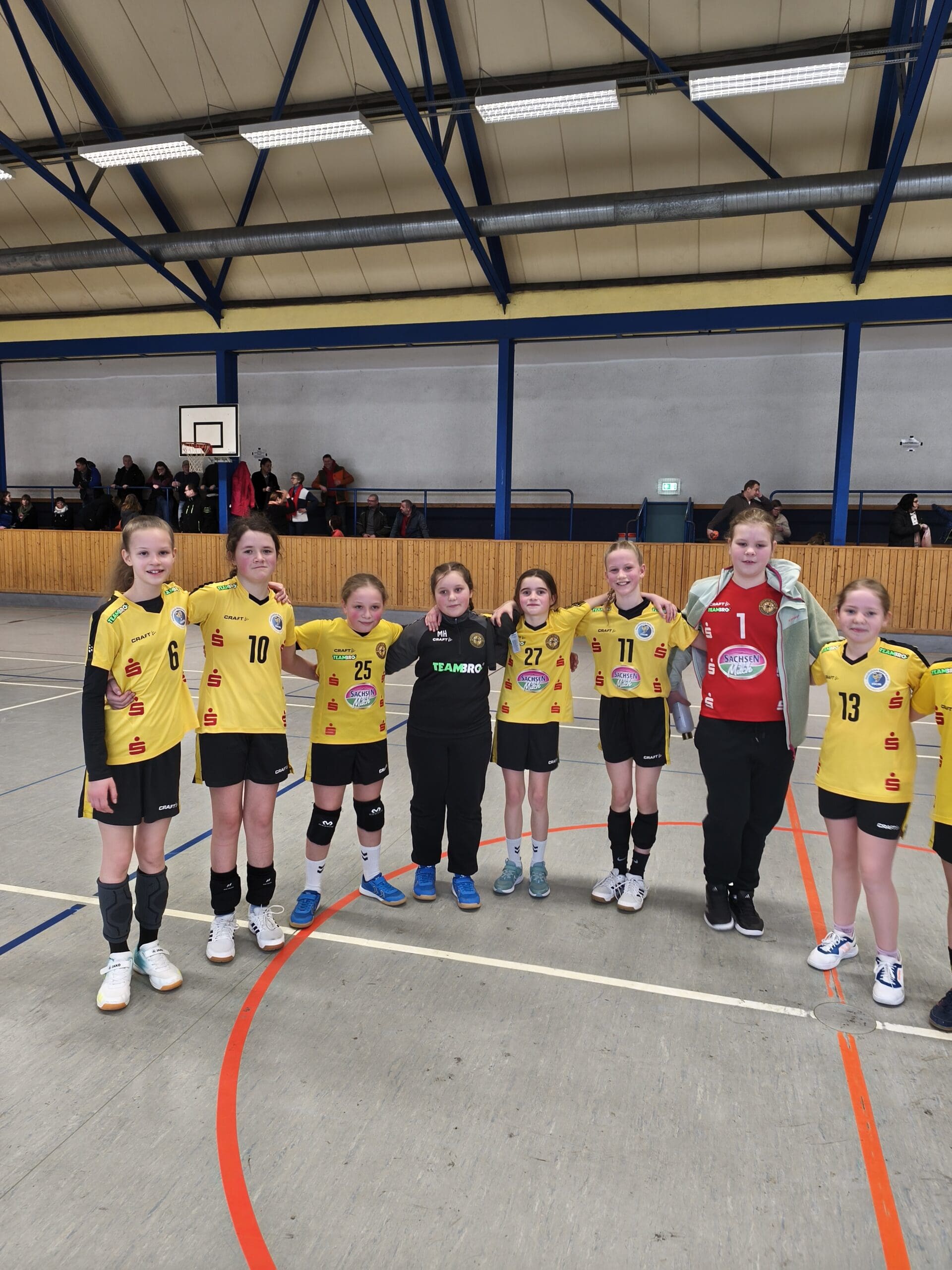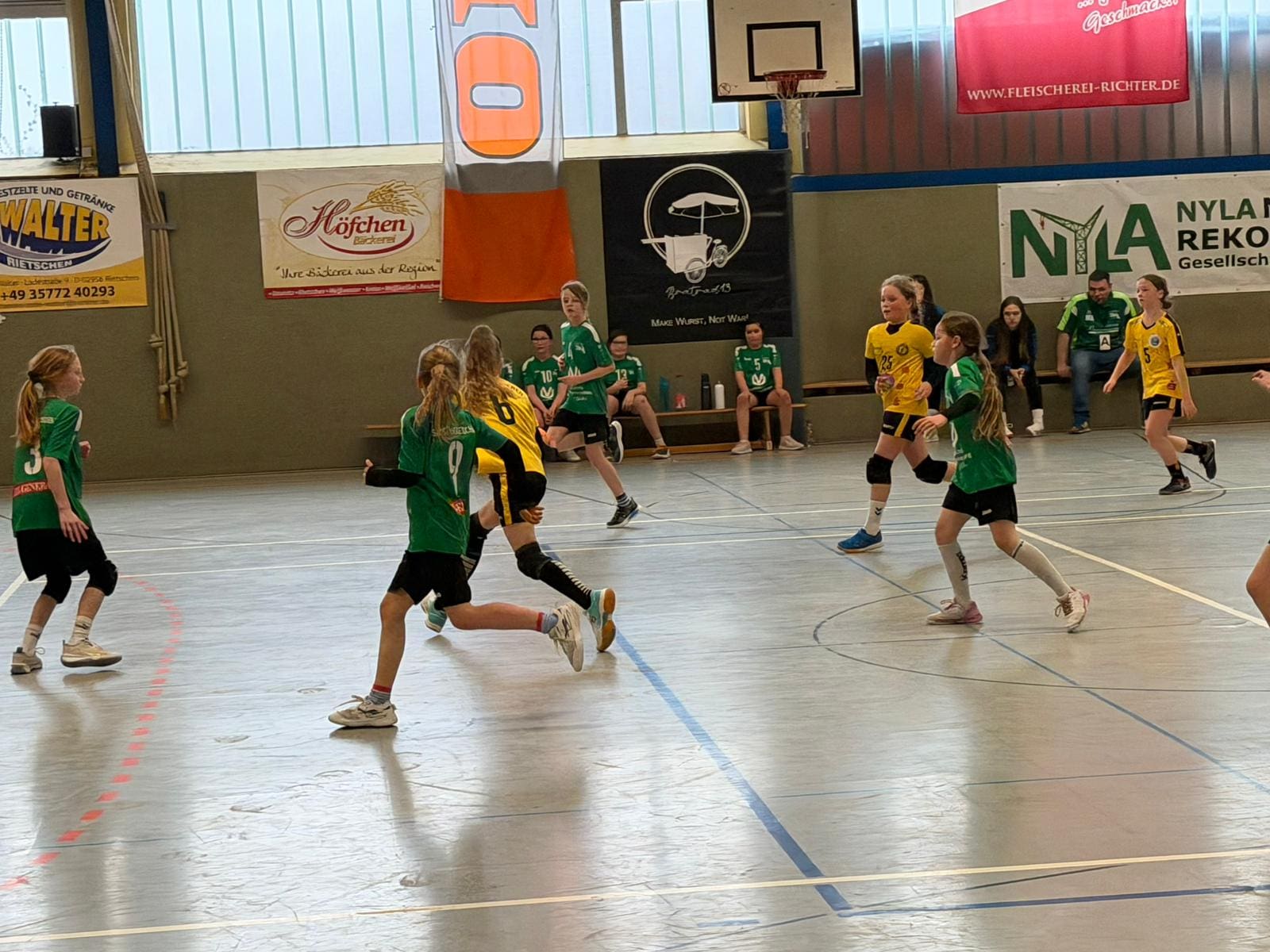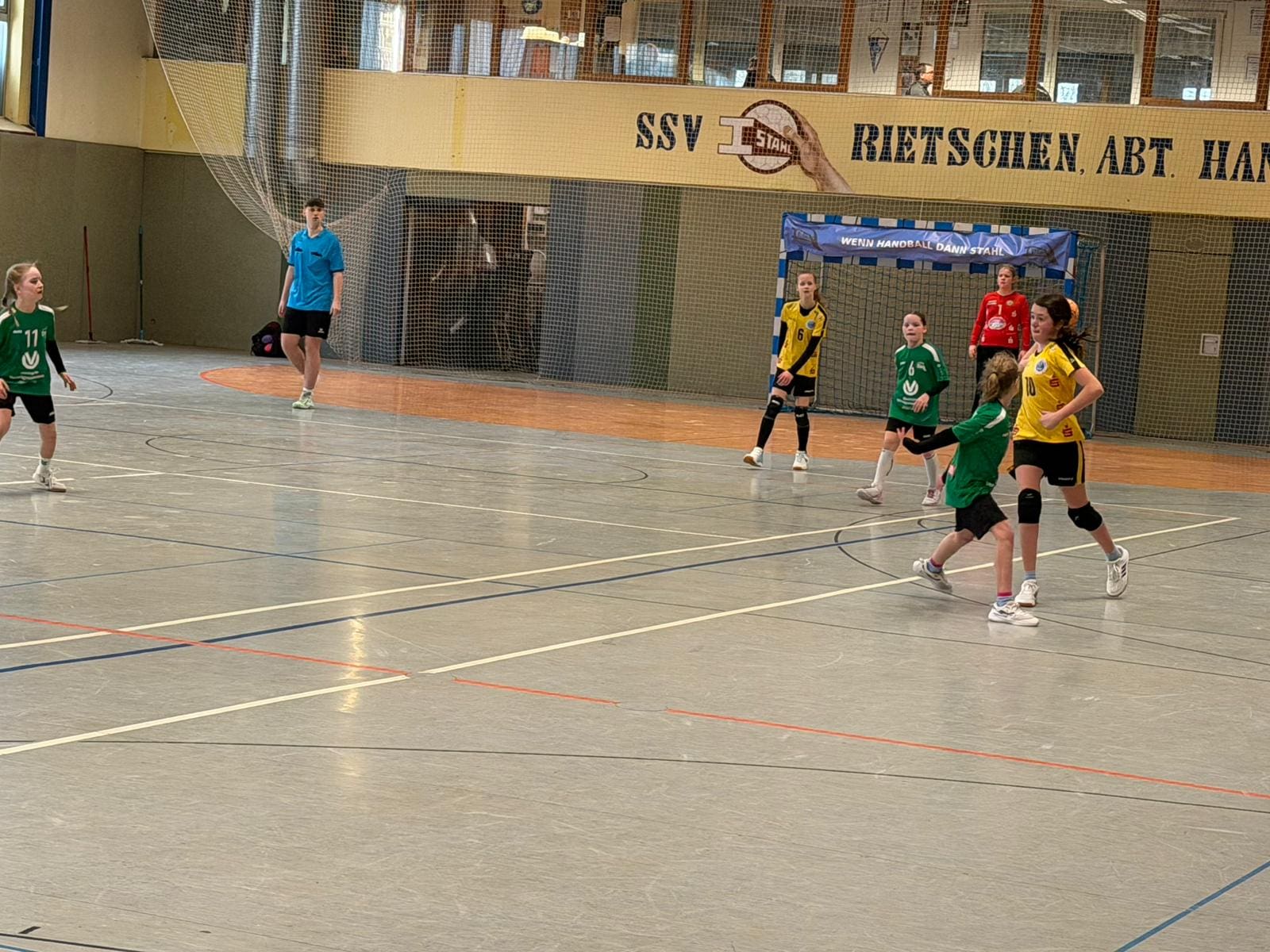 Auch in der zweiten Partie gegen den Gastgeber aus Rietschen behielt der HCR die Oberhand. Zwar gestaltete sich das Spiel phasenweise etwas schwieriger, da sich im Angriff einige Abschlussfehler einschlichen, dennoch setzten sich die Bienen am Ende verdient mit 24:13 durch. Elva überzeugte mit viel Übersicht und einem mannschaftsdienlichen Spielaufbau. In der Abwehr setzten Arwen und Elena wichtige Akzente, während Leonie per Siebenmeter traf und Lena sich ebenfalls in die Torschützenliste eintrug. In der zweiten Halbzeit zeigte zudem Flora eine starke Leistung im Tor.