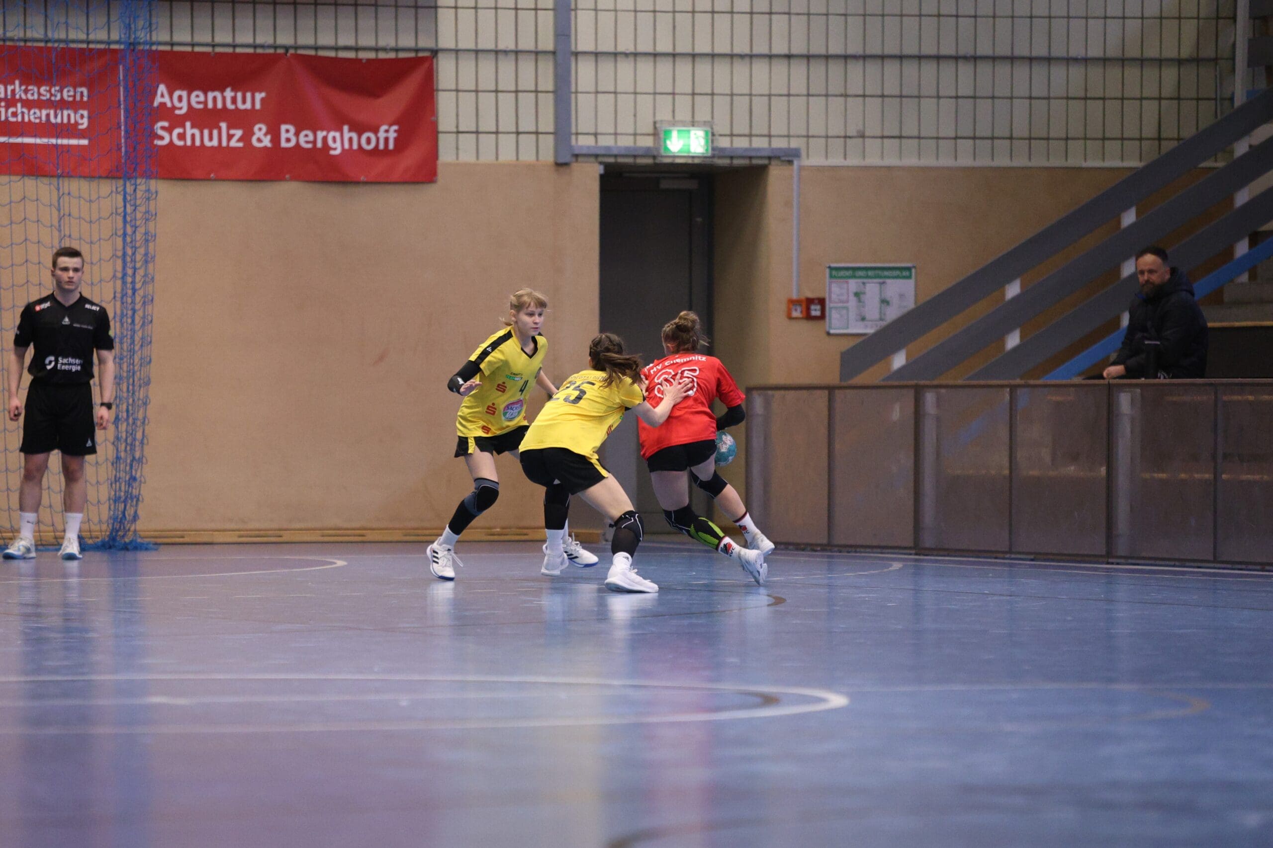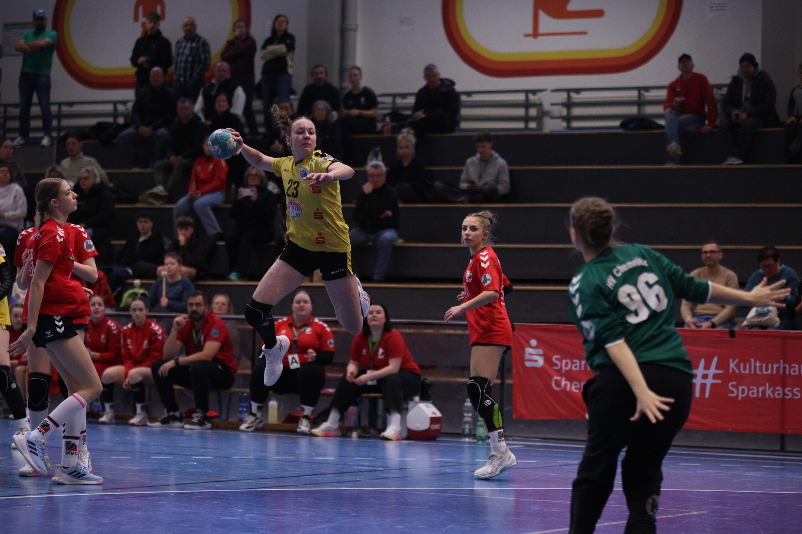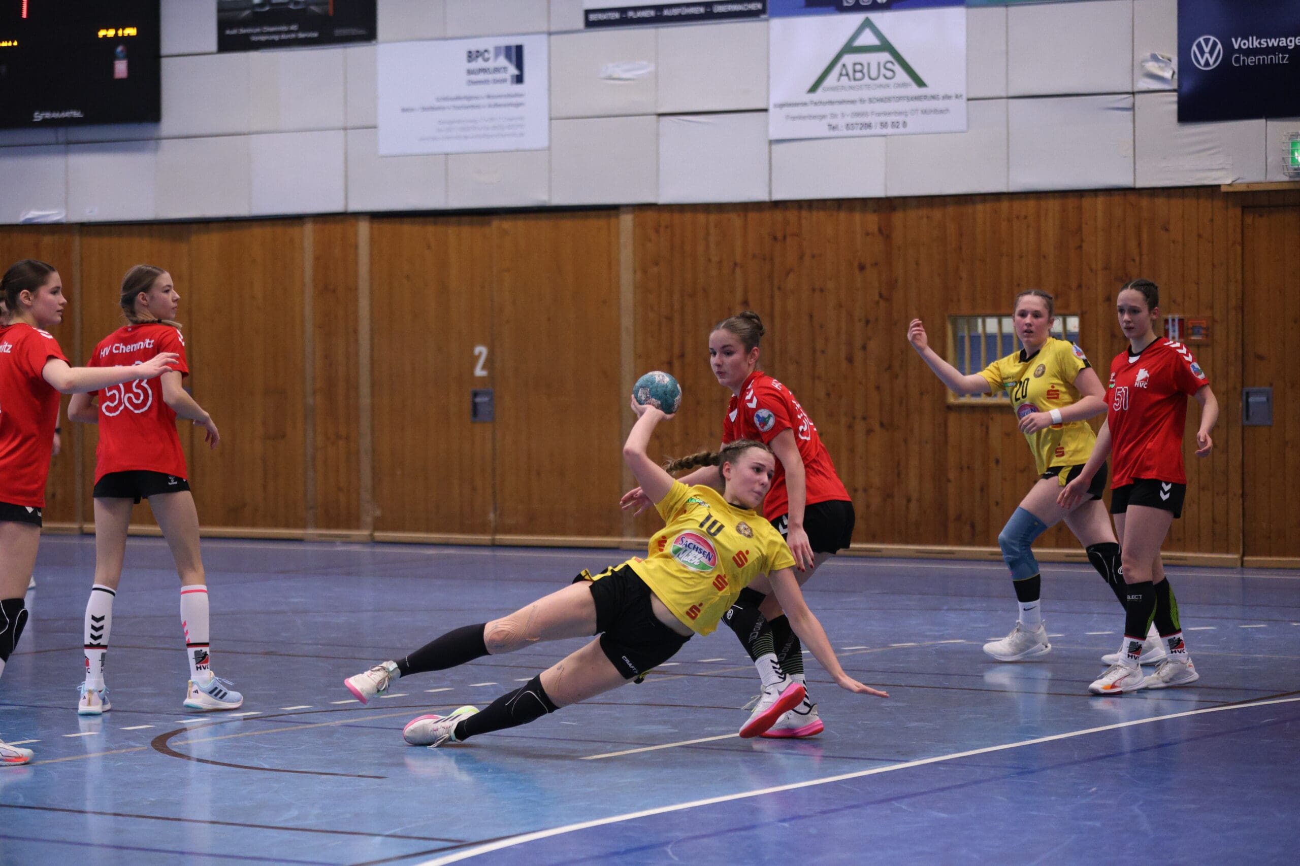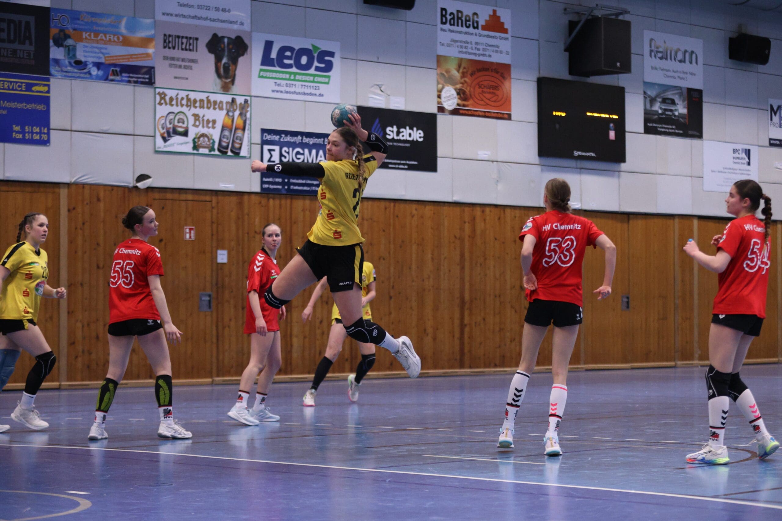 Am Sonntag, 25. Januar 2026, ging es um 14 Uhr auswärts zum HV Chemnitz. Dass viele Mädchen angeschlagen waren und auch im Trainerstab nicht alle fit durch die Woche kamen, machte die Aufgabe zusätzlich schwer. Eine Verlegung des Spiels war nicht möglich, also musste das Team die Situation annehmen, wie sie war. Und die Partie entwickelte sich entsprechend: über nahezu 50 Minuten ein enges Ringen, in dem das Eins-gegen-eins viele Szenen bestimmte, die Fehlerquote hoch blieb und die Kräfte spürbar nachließen. In der Defensive fehlte über weite Strecken die gewohnte Balance, Chemnitz kam immer wieder zu freien Abschlüssen, und zur Pause lag Rödertal mit 19:20 knapp zurück. Entscheidend war dabei, dass Annina in dieser Phase mehrere wichtige Würfe abwehrte und so dafür sorgte, dass der Rückstand überschaubar blieb.