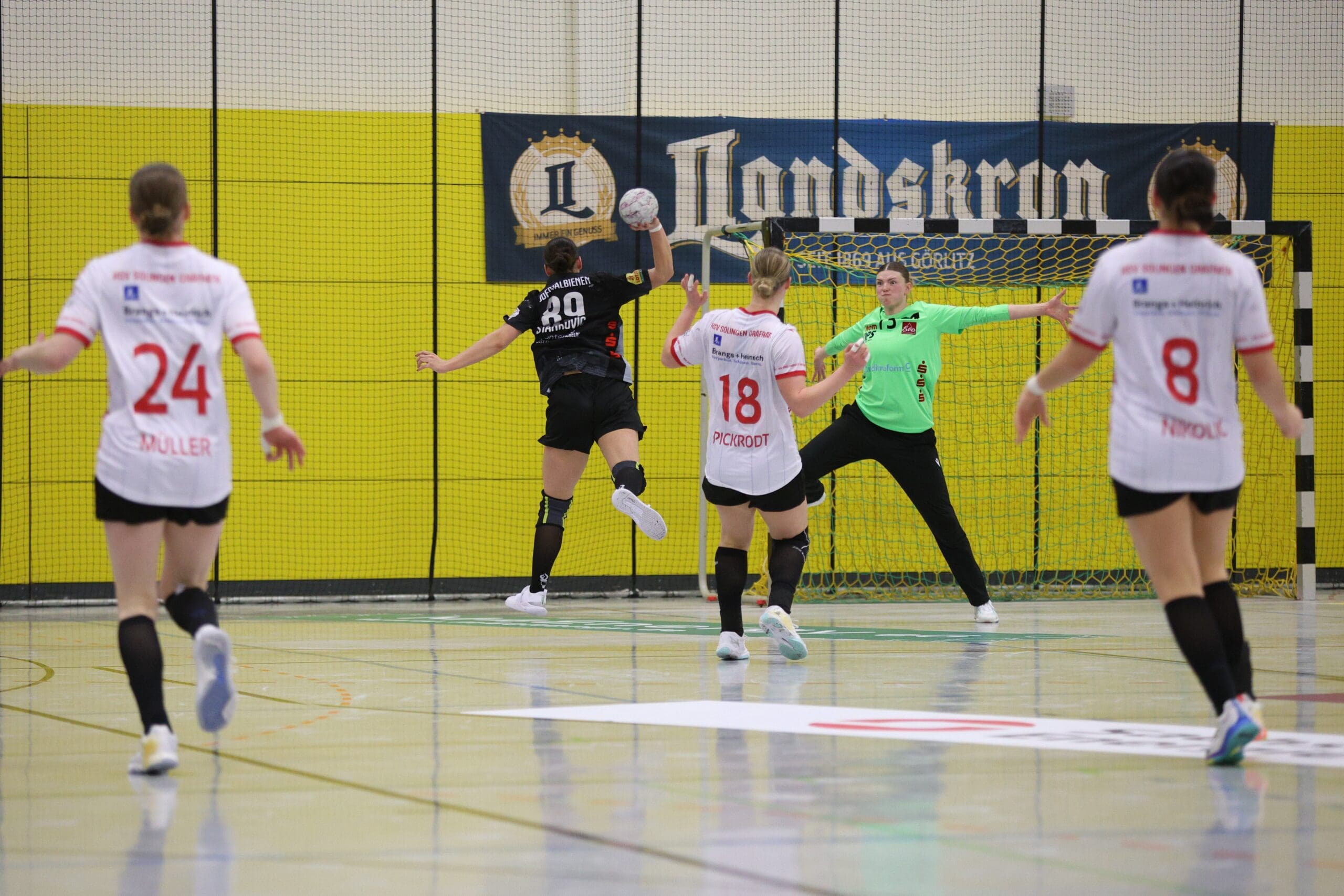 Die Bienentrainerin Maike Daniels fand dagegen auch einige kritische Worte:“ Solingen war der erwartet starke Gegner. Sie haben uns alles abverlangt. In der zweiten Hälfte dominieren wir das Spiel und führen klar. Was wir in den letzten sieben Minuten gezeigt haben, kann ich nur sehr schwer nachvollziehen. Solche Aussetzer dürfen wir uns nicht leisten, hier erwarte ich einfach mehr Coolness.“
