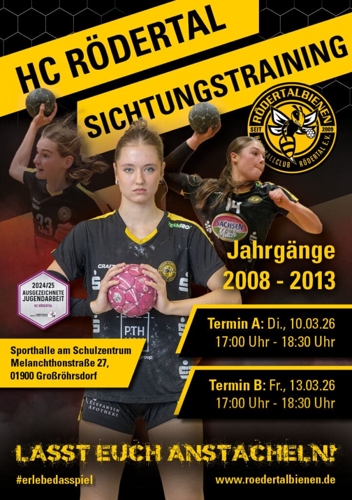 Der HC Rödertal lädt talentierte und ambitionierte Handballerinnen zu einem Sichtungstraining nach Großröhrsdorf ein. Unter der Leitung von Maike Daniels, unserer Bundesligatrainerin, möchten wir Spielerinnen kennenlernen, die sich sportlich weiterentwickeln und perspektivisch leistungsorientierten Handball spielen möchten.