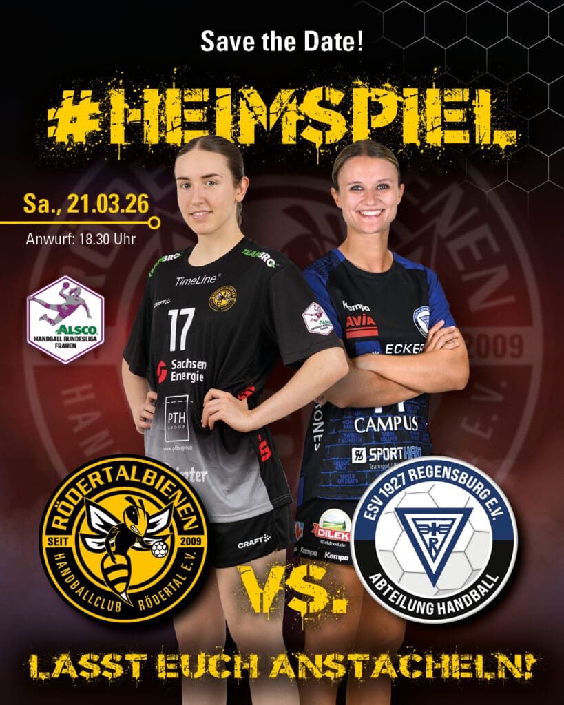 Am kommenden Samstag, dem 21. März 2026, spielen die Rödertalbienen ihr erstes Spiel des Heimspieldoppelpacks gegen die Bunkerladies des ESV 1927 Regensburg. Anwurf der Partie ist um 18:30 Uhr.