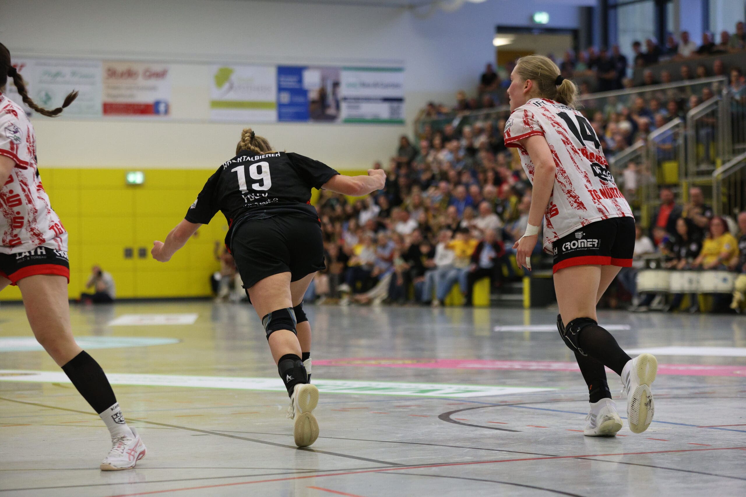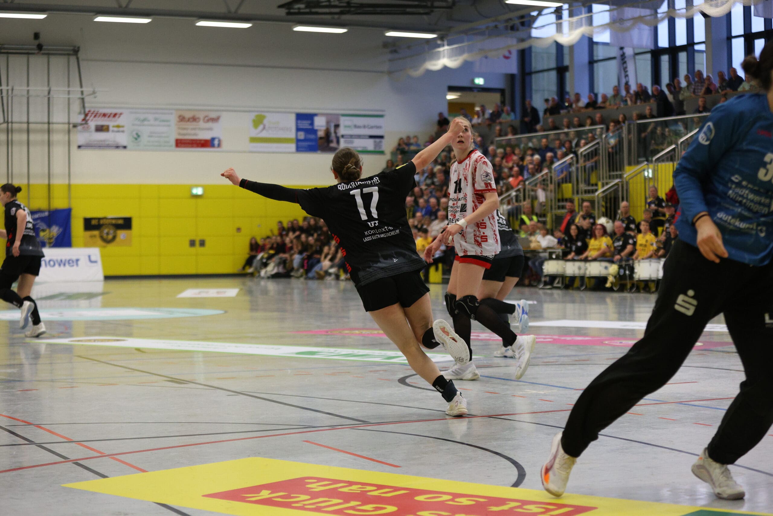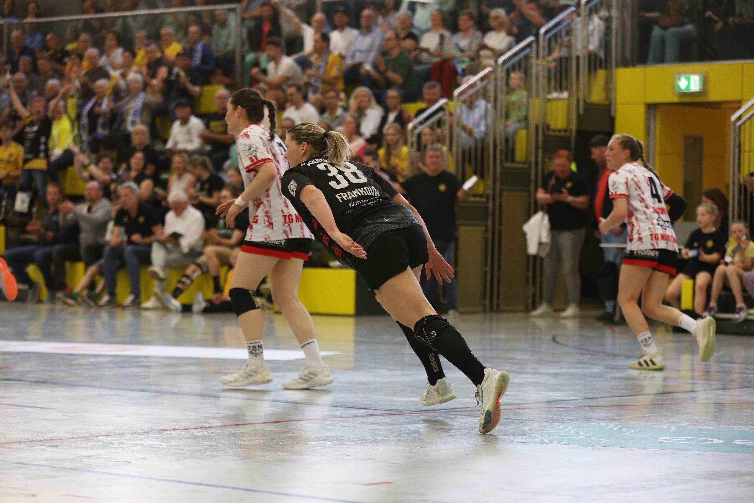 Die Schlussviertelstunde (22:21) läutete Maike Daniels mit einer erneuten Auszeit ein. Leila Ott traf dann von Außen zielgenau per Innenpfosten zur Zwei-Tore-Führung. Doch ein vergebener Siebenmeter machte es nicht einfacher. Nach einem Ballgewinn und einer Parade von Ann Rammer musste Eleonora Stankovic die Bälle nach dem Konter nur noch ins leere Gäste-Tor werfen. Alles sprach für einen Sieg, doch Nürtingen kämpfte sich wieder ran. So ging es mit 25:25 und einer Zeitstrafe für Arwen Gorb in die Crunchtime. In dieser hatten die Gäste die beweglichere Abwehr und auch die besseren Lösungen im Angriff. Drei Minuten vor Schluss führte die TG mit zwei Treffern. Rödertal kam zwischenzeitlich nur noch auf einen Treffer heran, mehr gelang nicht.