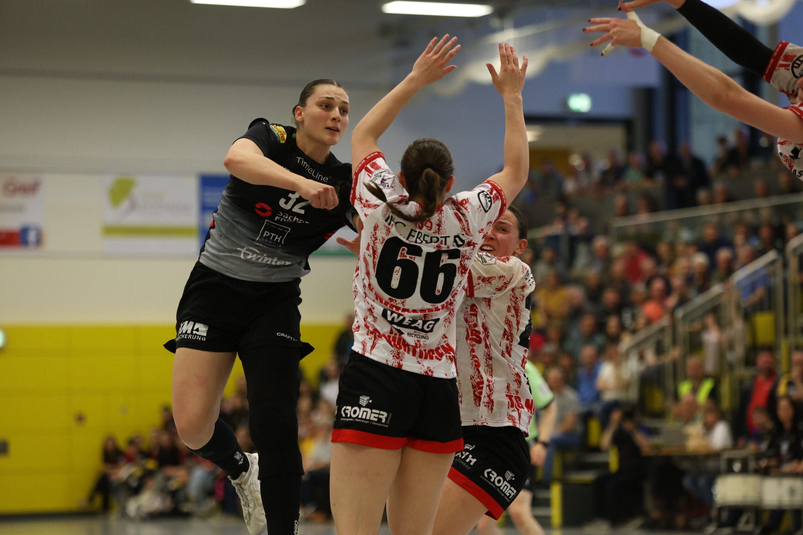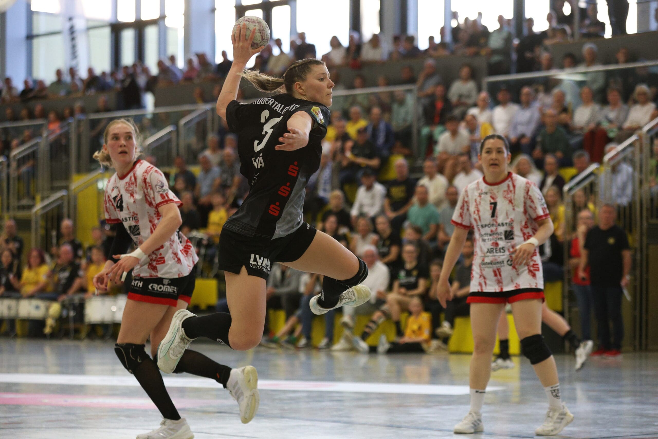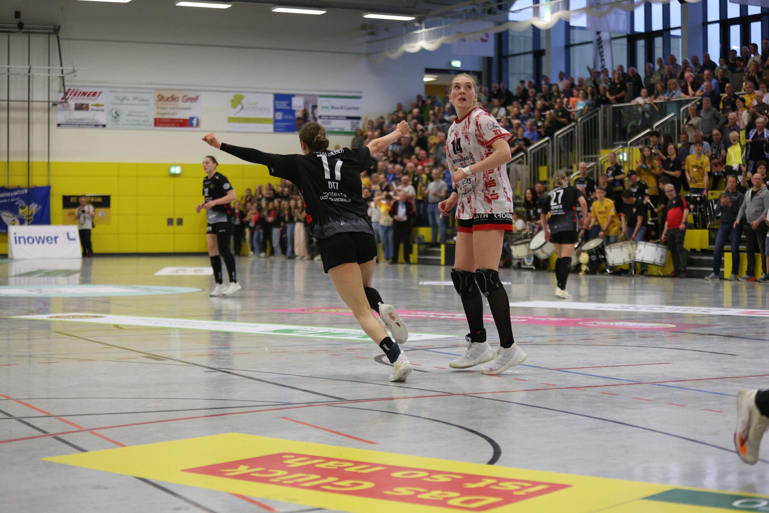 Die Schlussviertelstunde (22:21) läutete Maike Daniels mit einer erneuten Auszeit ein. Leila Ott traf dann von Außen zielgenau per Innenpfosten zur Zwei-Tore-Führung. Doch ein vergebener Siebenmeter machte es nicht einfacher. Nach einem Ballgewinn und einer Parade von Ann Rammer musste Eleonora Stankovic die Bälle nach dem Konter nur noch ins leere Gäste-Tor werfen. Alles sprach für einen Sieg, doch Nürtingen kämpfte sich wieder ran. So ging es mit 25:25 und einer Zeitstrafe für Arwen Gorb in die Crunchtime. In dieser hatten die Gäste die beweglichere Abwehr und auch die besseren Lösungen im Angriff. Drei Minuten vor Schluss führte die TG mit zwei Treffern. Rödertal kam zwischenzeitlich nur noch auf einen Treffer heran, mehr gelang nicht.