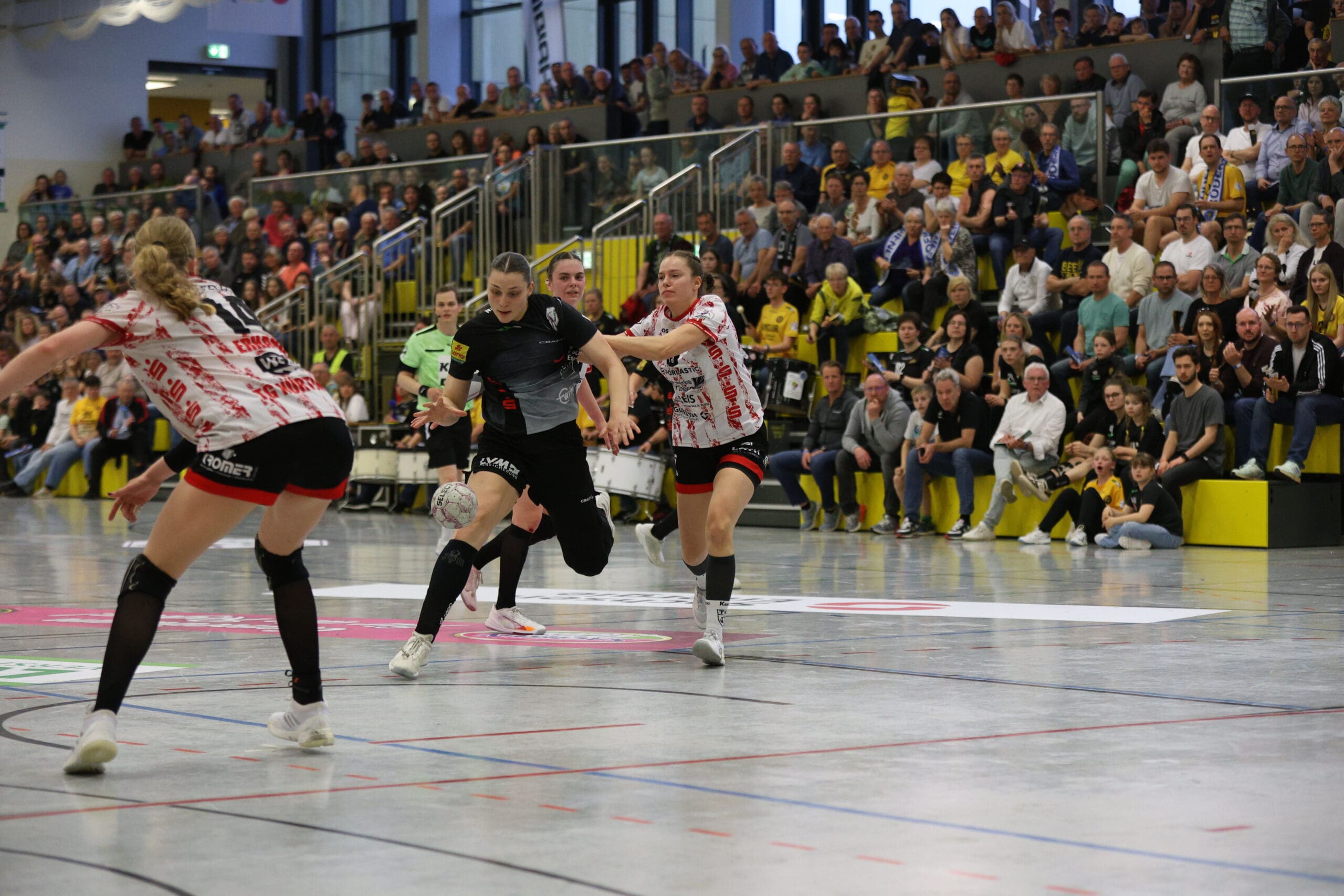 Nach dem Wechsel zeigten zunächst die Gäste die bessere Spielanlage und glichen wieder aus. Der HCR stellte auf 6:0-Deckung um und erarbeiteten sich die Bälle. Es haperte jedoch in der Offensive. Vielmehr waren es Einzelaktionen, sowie bei Rozemarijn Alderden, die sich ein Herz nahm und aus dem Rückraum zum 21:18 erhöhte. Kapitänin Lena Smolik ging dann in sich öffnende Lücke und traf zum 22:18 (41.)